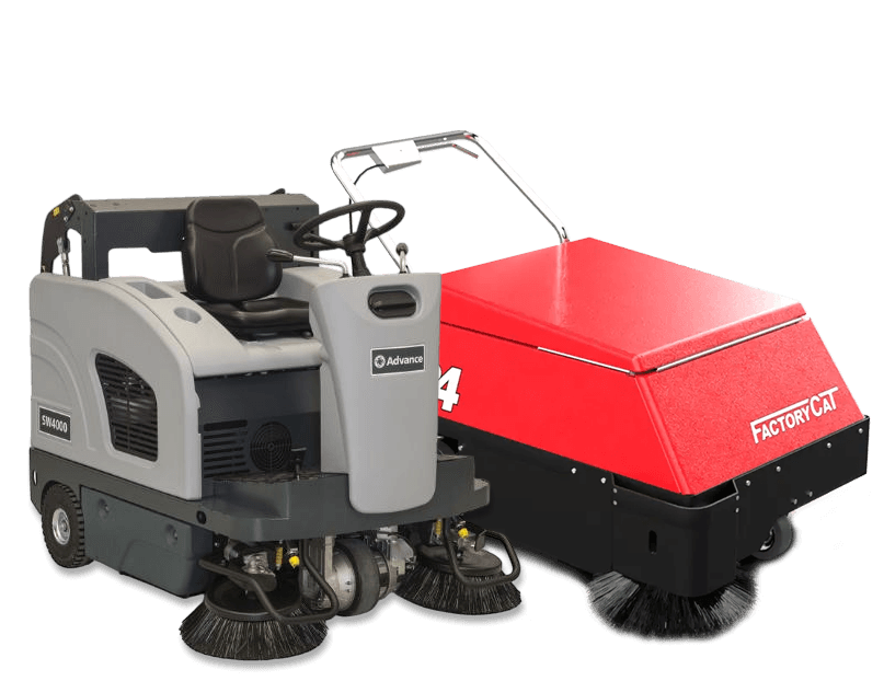 • Ride-On Sweepers – Built for large-scale, high-dust environments