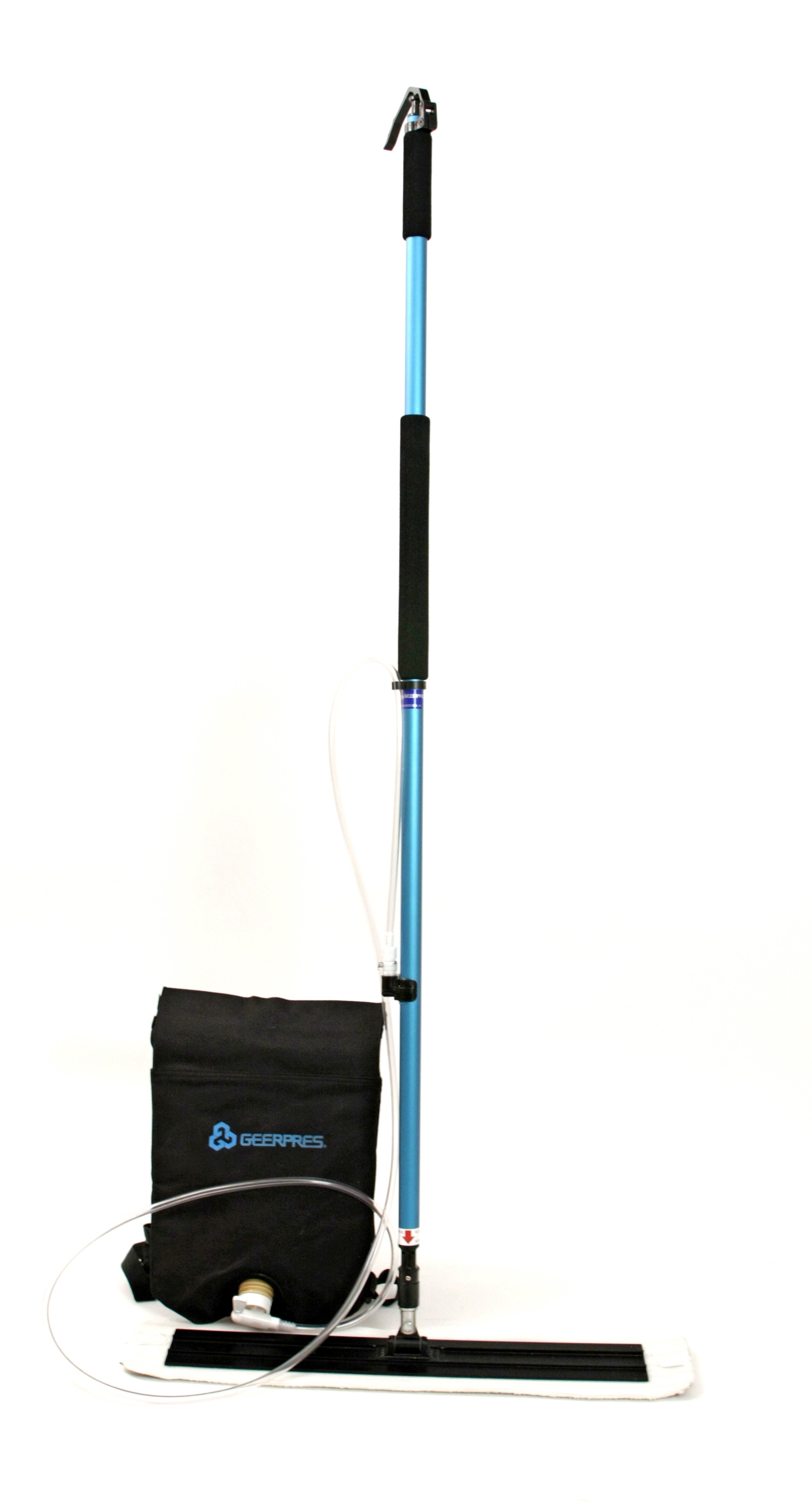 The GeerPress CAT Chemical Applicator Tool Kit - 18" #4500 offers a heavy duty canvas backpack, refillable chemical bags, and an anodized aluminum handle that is 56 ½”. The swivel trigger-operated fluid dispenser offers quick and easy fluid dispensing and continuous flow when the valve is depressed. This sanitary mop design is maneuverable, lightweight, and corrosion resistant with virtually hands-free installation and removal.