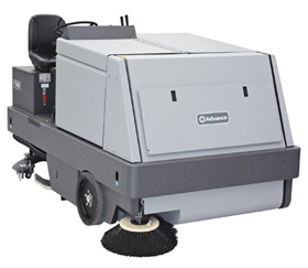 This rugged sweeper-scrubber also delivers enhanced safety. Electric drive and rack-and-pinion power steering systems give you full control. Rider position assures clear sight lines, and an ergonomic operator’s compartment reduces fatigue.