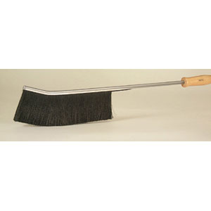Long and narrow. To clean radiators and other places where a long handled, narrow brush is more advantageous. Fill material is black crimped nylon anchored in steel backing. Brush face length is 8", overall brush length is 20". Wood handle. Fuller Brush Company