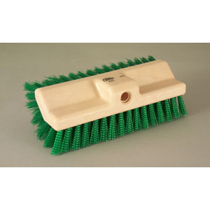 Advanced approach to scrubbing floors. Dual surface brush face allows cleaning from a "stand up" or "horizontal" position. Durable plastic block with crimped plastic bristles for aggressive cleaning ability. Use with a threaded handle. Polypropylene fill material.