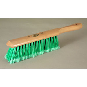 Top of the line, dual fill. ensures removal of heavy debris and fine dust. Soft black polystyrene encased in stiff, green, flagged polystyrene. Staple set in a clear lacquered hardwood block.