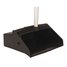High impact polypropylene dust pan. Swivel pan allows for easy storage in an upright position. T-bar locking feature allows upright carrying. Large capacity dust bin. Lightweight aluminum handle. Height: 36 1/4" Width: 12"